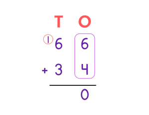 Under this method, we begin from the right, so we will add 6 and 4, the sum will be 10. Since we group ones and tens, we will put 0 in the ones column and give 1 as carryover to the tens column